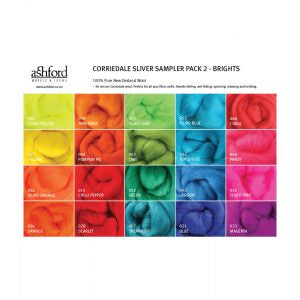 Directly from Ashford’s own woollen mill in New Zealand, this sample packs of Corriedale colours allows fibre artists to feel the quality and experiment with the colour range.
