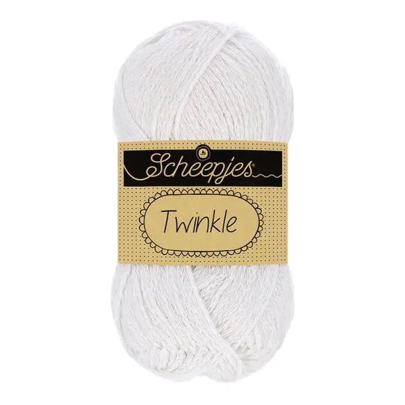Add some sparkle to your knitting and crochet projects with Scheepjes Twinkle! Made from a Cotton and glittering Polyester blend, create lightweight and breathable items with a wow-factor! Scheepjes Twinkle is particularly suitable for creating festive decorations and homewares. Scheepjes Twinkle is a DK weight yarn that weighs 50 grams and has a length of about 130 metres. Recommended needle/hook size is 4.00mm.Â