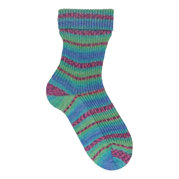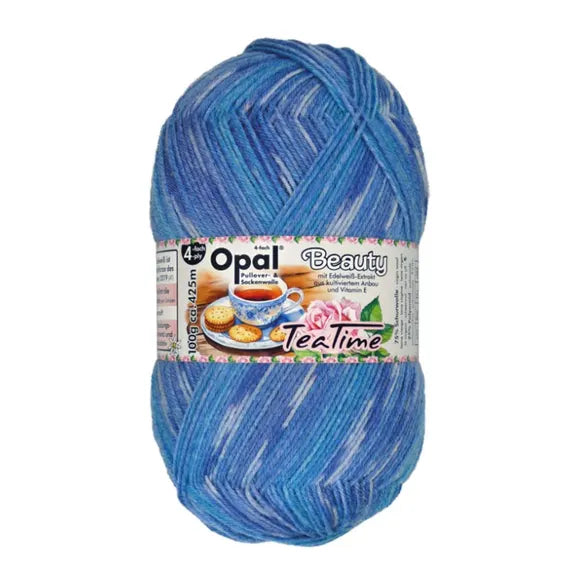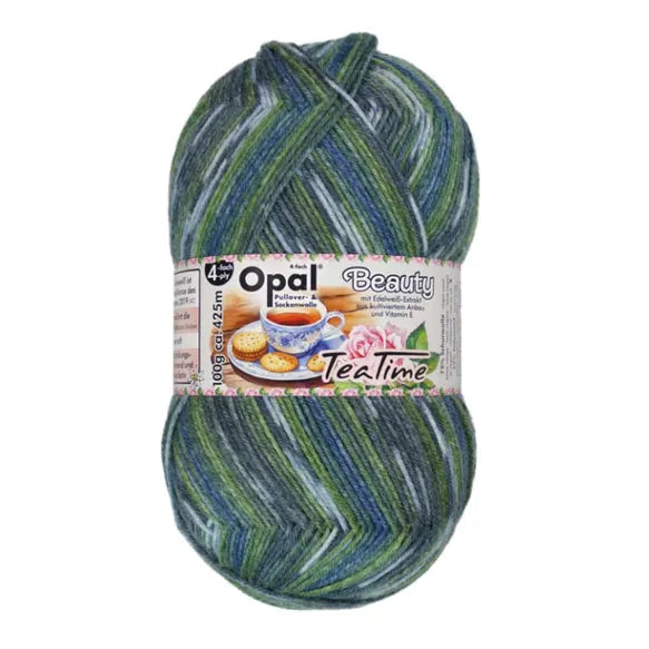 Opal Beauty 5 Tea Time 4-ply yarn with edelweiss extract and vitamin E is a hard-wearing yarn made from 75% virgin wool (Superwash) and 25% polyamide in 6 beautiful self-striping colourways. The Tea Time collection contains six beautiful, self-striping colours inspired by the cosy feeling that the daily tea ritual brings. This yarn is suitable for knitting wonderfully warm socks, but it can also be used for sweaters, hats, gloves and scarves.
